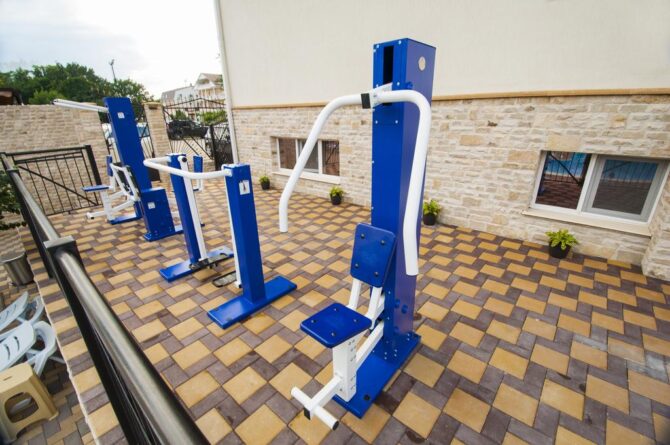 The gym is located in the open air. In it you can do exercises after a morning jog along the alleys of the Embankment or the park, conduct a daily workout using the latest weight training machines. The sports corner is small in size, but it has everything you need for physical exertion.