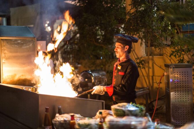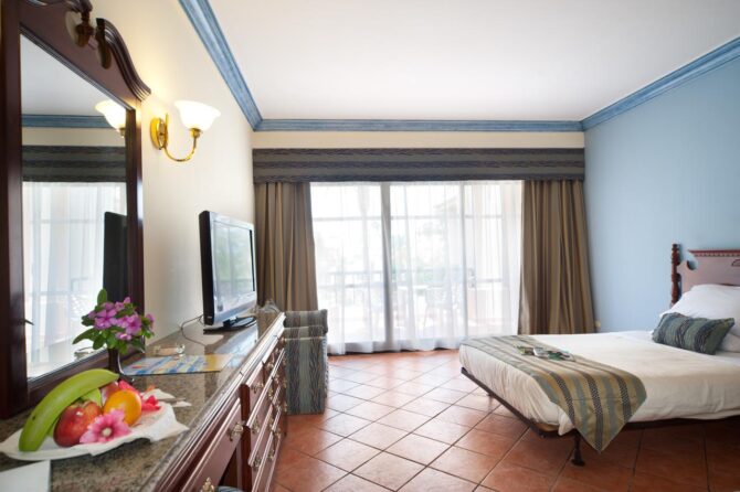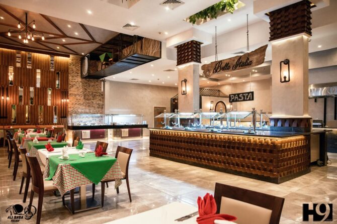 Guests of the resort eat in several restaurants, and also have the opportunity to visit bars. Main courses are served in the main restaurant, consisting of an indoor hall and a terrace – “buffet”. Also on the “all inclusive” system, guests can go to Italian and oriental restaurants, order drinks at the pool bars and on the beach. For an additional fee – a fish restaurant and a hookah, seafood dishes in the bar.