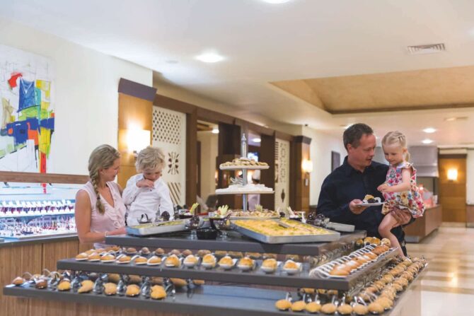 Those who are accustomed to the concept of “all inclusive” and seek to take from it the maximum possible, waiting for a fairly rich assortment of hot, meat, side dishes, soups and salads. As a dessert, you can enjoy cakes and oriental sweets, as well as fruits. The Moorish café constantly bakes fresh pastries. Here you can taste unique Turkish coffee and become a participant in the tea ceremony based on the traditions of this great country.