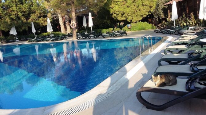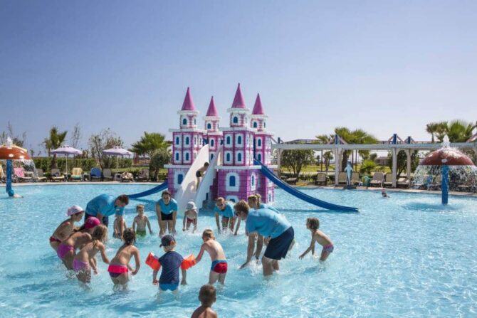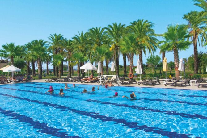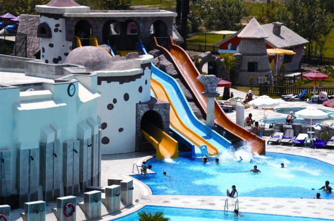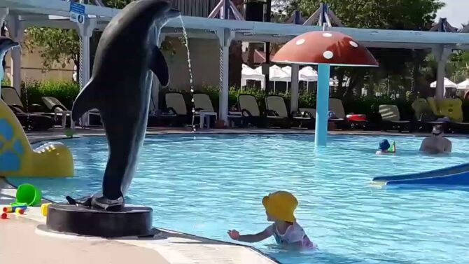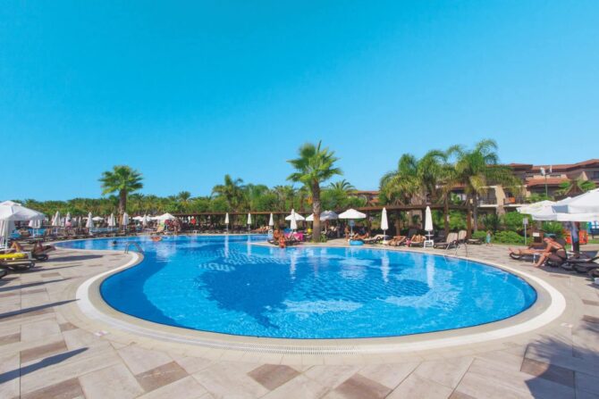 As mentioned earlier, in the hotel FUN & SUN Club Serra Palace ex Сlub Сalimera Serra Palace 5 * built a large pool in the fresh air. There is also a water body for children, a water park and an indoor facility in the spa. To umbrellas and sun loungers vacationers have free access, as well as to everything that is offered in nearby bars. Mattresses and towels owned by the property are available. This rule also applies to all property located on the territory of its own beach with a length of 200 meters. As part of the all-inclusive program, guests can ride bananas, water aerobics and water polo. On the coast there is a soft sandy surface and a convenient gentle entrance to the sea.