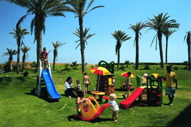 On the playground for children there are carousels, trampolines, puzzles, machines. The guys will definitely find friends with whom they will not want to part. If you want privacy, hire a nanny to look after the child.