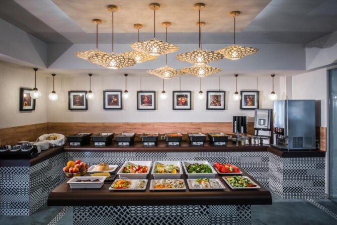 A wide number of rooms «Anesis Blue Boutique Hotel» allows each vacationer to choose a guest room that will appeal to him. All rooms are decorated in a modern style, furnished with quality furniture. Thanks to a well-planned space, a large amount of free space is preserved. Tourists here feel as comfortable as possible even during a long stay. Extras include air conditioning and a refrigerator. A full set of personal hygiene products is provided. An extra baby cot can be provided for families with children upon prior request.