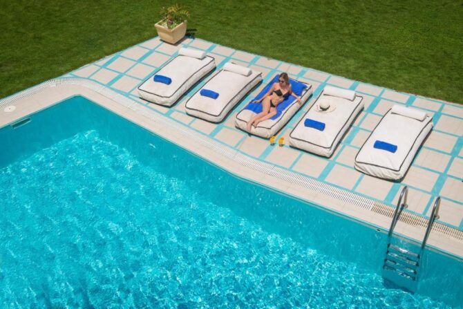 There is also a poolside bar throughout the day. There is a wide selection of alcoholic and non-alcoholic beverages. Guests can enjoy the taste of their favorite cocktail while sunbathing on the sun lounger.