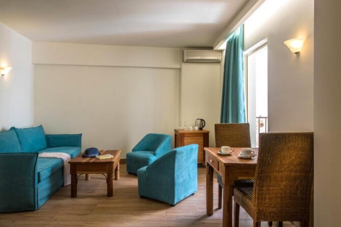 - Superior Suite is a spacious room with one bedroom and a living room. A well-planned space makes it possible to comfortably accommodate 4 people here. Sleeping places are provided with a double bed and a sofa bed. The room has one air conditioning, but if desired, guests can ask to add a second. The hotel has only 4 rooms of this category.