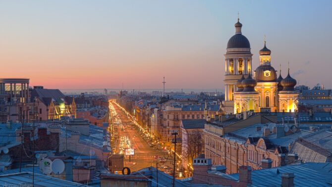 You can go for an evening walk or by metro. Admiralteyskaya station is a five-minute walk away. In the evening, Nevsky Prospekt is especially beautiful. The illumination of buildings is turned on, which is made in the same style and even listed in the Guinness Book of Records. Vosstaniya Square separates the old Nevsky from the New, so the walk can be divided into two parts, taking a break in some cafe.