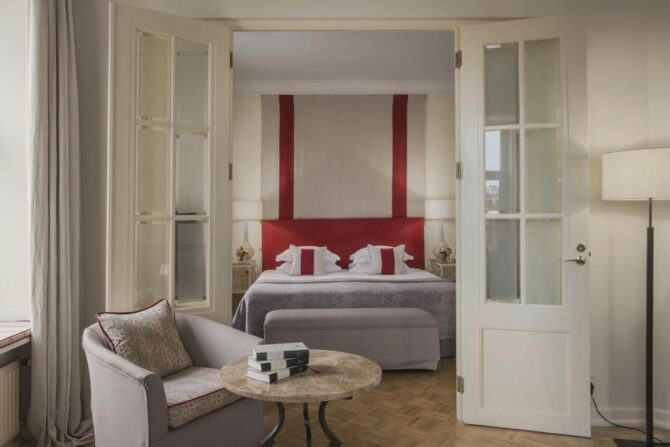- Junior Suite (39 sq. m.) combines a unique design and an amazing view from the windows of St. Isaac’s Cathedral. The elegant junior suites are visually divided into a bedroom and a living room.