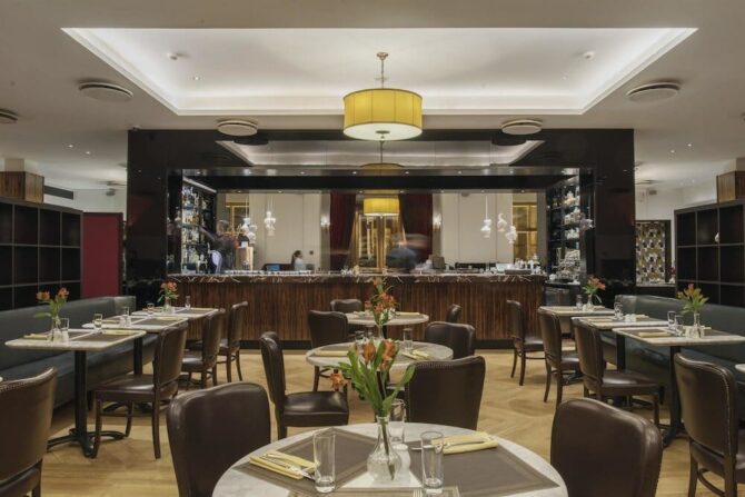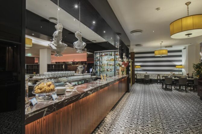 Catering for guests is engaged in a fashionable restaurant “Borsalino”. The concept incorporates the traditions of home Italian cuisine. The menu was developed by rocco Forte Hotels chef Fulvio Pierangellini. He collected the best recipes from different regions of Italy and embodied them in one of the best restaurants in the northern capital of Russia. The interior was designed by designer Olga Polizzi. Exquisite furniture, high-quality textiles, delicious food and a beautiful view of St. Isaac’s Cathedral create a relaxed atmosphere for a pleasant pastime.