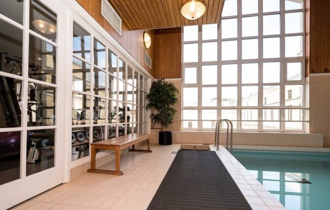 Guests have free access to the gym, swimming pool and sauna. All fitness services must be booked in advance. Opening hours: gym from 7 am to 10 pm, sauna / pool from 9 to 21.00. The water in the pool is heated to 23 degrees. Children are allowed to bathe only in the presence of their parents. The gym is equipped with high-tech TechnoGym simulators.