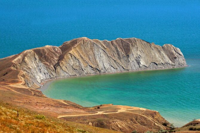 - Cape Chameleon – is located a few kilometers from Koktebel. With its unusual shape, it resembles a giant lizard with a protruding crest. During the day, the rock changes its shades several times, for which it received the name Chameleon.