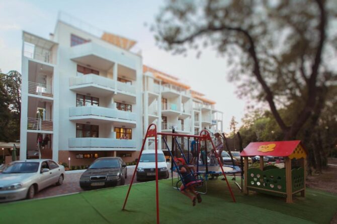 Families with children can not worry that their kids will be bored in the “Art Hotel”. In the period from June to September for young tourists from 9:00 to 18:00 there is a group of animators. In addition, there is a game room for children, there is a special playground for games. In the hotel you can relax with children of any age and be sure of their safety.