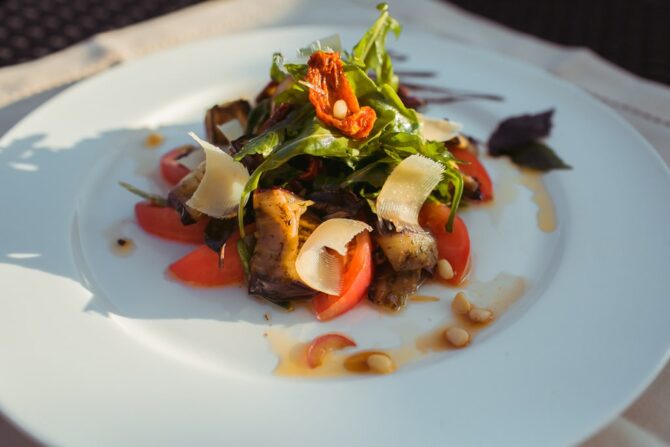 Delicious breakfasts are served every morning for hotel guests. They include oatmeal with fruit, cheesecakes, hot drinks. Depending on the time of year, lunch can be diversified with a cool okroshka or delicious borscht with lard and croutons. The café menu includes a large selection of snacks, salads, meat dishes. Seafood lovers will definitely appreciate fettuccine with salt and red caviar or baked mullet with vegetables. Thanks to the wide variety of dishes, guests can discover completely new taste sensations every day.
