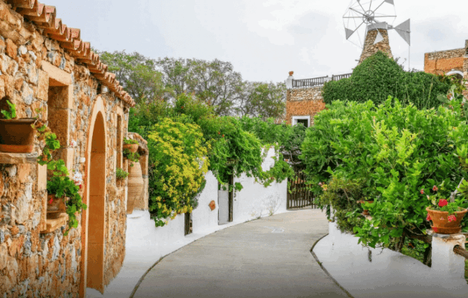 The mountain village of Akhlad is located a kilometer from the resort village of Agia Pelagia. It is a favorite place for walking, especially on hot sunny days, when the body can no longer withstand the beach inferno, and you want something cool, fresh, mountainous. When the coast began to develop infrastructure for recreation, the villagers were the first to build home hotels and welcome tourists. Going up to Ahlada, you can get acquainted with their own life. There are many taverns serving classic Cretan food, not burdened with delights and artistic elements of serving dishes. From here from the top of the hill there are amazing views of the surrounding area. Intricately curved streets each time will lead to different interesting places, built up on both sides of authentic residential buildings.