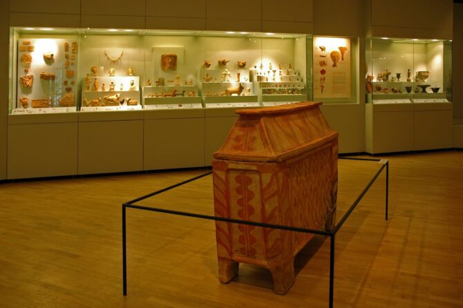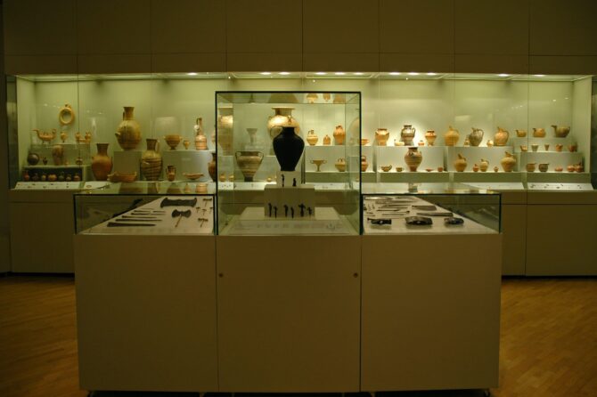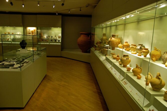 If you go towards Heraklion, then 14 km from Agia Pelagia you can visit the town of Gazi and the exhibition of archaeological finds of Malevizi. The collection is exhibited in the city hall. It occupies 40 showcases and is divided into 7 thematic sections. Items relating to the period from 4000 BC to 300 AD are presented. Most of the artifacts were donated from the private collection of entrepreneur Nikolaos Metaxas, collected between 1959 and 1997 from all over Crete. The museum’s collection has been replenished with another 30 finds from recent excavations in the Malevizi area. The exposition is open for inspection from Tuesday to Sunday from 08.00 to 15.00. Monday is a day off.