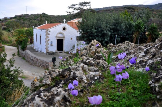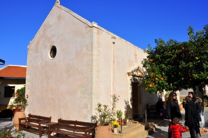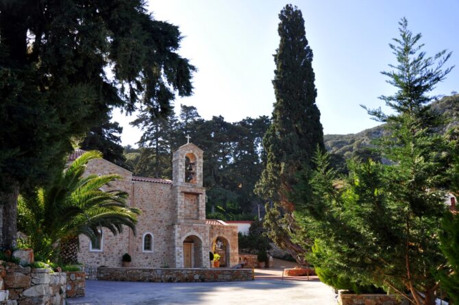 A trip to the holy places of Agia Pelagia will not be complete if you do not reach the village of Rogdia and visit the ancient monastery of Crete. When the monastery of St. Savvatian was built, it was not possible to establish exactly. Therefore, the dating was carried out according to the time of construction of its main temples. The church of St. Panagia appeared in the 16th century, and the church of St. Anthony carved into the rock – in the 15th. It is believed that in the 16th century the monastery was miraculously saved from destruction during the Great Cretan War. Then it turned into a powerful and influential Orthodox center of the island.