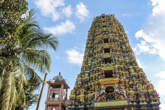 This Sri Mutumariamman temple is a Hindu temple dedicated to the mother goddess. Almost everywhere in Sri Lanka you can find similar temples, with a mention in the name – “mariamman” or “amman”, which means “mother”. Locals believe that she blesses offspring, a successful marriage, cures some diseases.