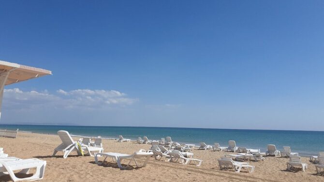 At 100 meters from the hotel begins the sea and a huge fenced strip of golden sand private beach. It has its own infrastructure – sun loungers with umbrellas are installed, in the middle there is a freshwater pool measuring 4×12 meters. At the same time, there are separate showers for fluring salty sea water from the body. Separately there is a place for washing feet. Rescuers work, there is a first-aid post, a toilet. For active leisure, volleyball and children’s playgrounds are available. Animators entertain people, arranging mass games, water festivals. The snack bar serves guests on the “All Inclusive” system.