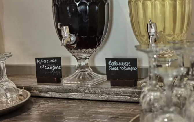 From alcohol are offered 4 types of wine from Kuban producers, vodka, 2 beers, cocktails.
