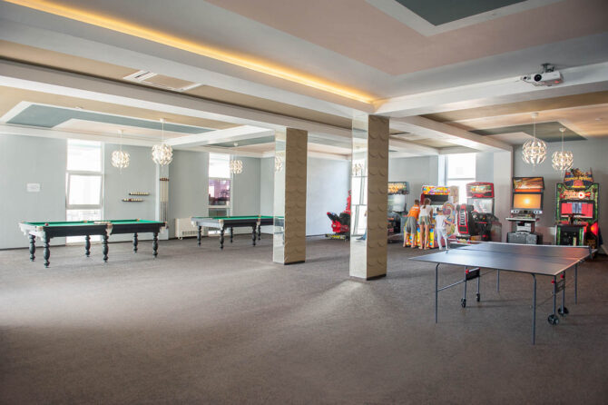 As an organization of leisure for vacationers, the hotel relies on animation. A team of professional students develops daily programs for different ages. Families with children can take part in interactive games (quests, mafia, quizzes). For adults, master classes are organized in various areas. Those who wish can attend classes in the direction of Zumba (a special dance complex for weight loss) or Ballydance (otherwise – belly dance).