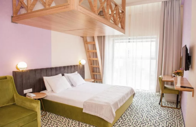 The rooms are designed for two people. The area of the room allows you to install another bed for a child up to 11 years old (armchair-bed). If there is another child in the family under 5 years old, then he can sleep with his parents on a large double bed. To accommodate guests are offered: