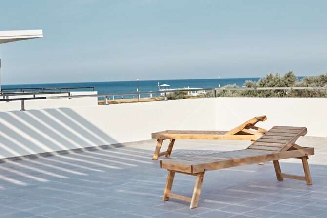 For companies of friends or large families, three- and four-room apartments are offered. Their spacious rooms have beds, upholstered furniture, a kitchen set, a seating area on the balcony or terrace. The interior of the 4-room apartment is made according to an individual design project. Its area is 100 square meters. m It may well accommodate 8 people.