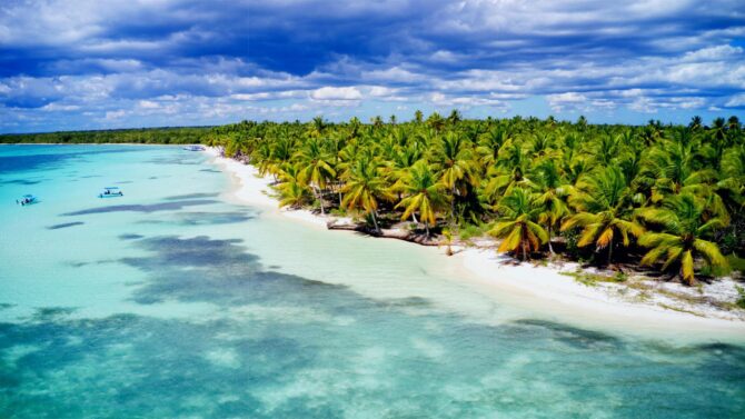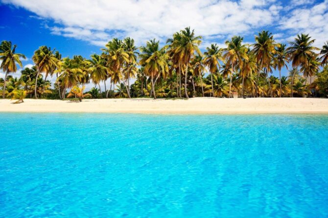 Saona Island is a tropical island that lies near the southeastern edge of the Dominican Republic. The area of the island is 110 km2. The island belongs to the Protected Nature Reserve of Parque del Este. This part of the Eastern National Park is known for its mangroves, coral reefs and palm-lined beaches.