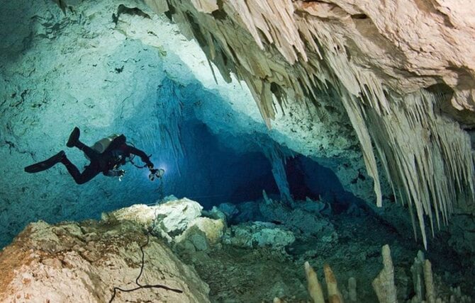 To dive into this cave, you need to have good preparation also because at the bottom there is a large layer of silt, more than half a meter. The slightest careless movement and visibility in the cave becomes zero.