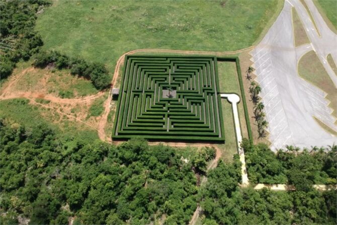 In the archaeological site of the Garden labyrinth Laberinto de las cueva de las maravillas there is a labyrinth, with a length of 1632 meters. The garden labyrinth is located on the Eastern Highway, near the border between the provinces of La Romana and San Pedro de Macoris. Nearby, as a landmark, there are hotels Playa Nueva Romana.