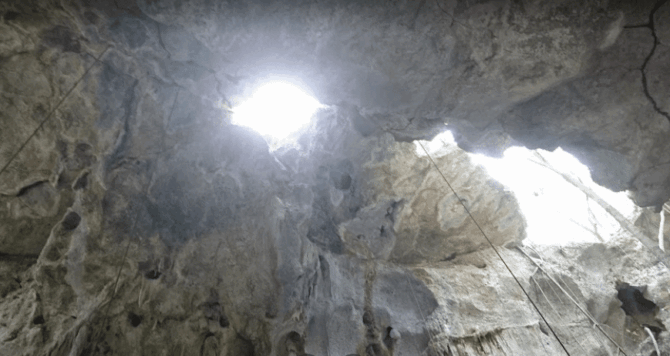 Multicolored rays of the sun make their way into the darkness of the cave through a crack in the rock. But, for additional consecration, it is better to take a flashlight with you.