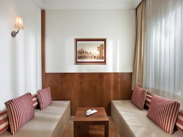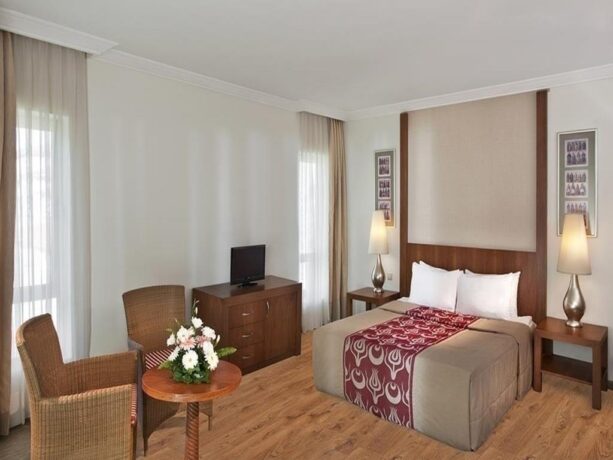 Akka Antedon Hotel 5 covers 90,000 m2. All buildings are erected in the style of the republican period. The complex consists of a five-storey main building, a five-storey family building and seven villas of the Akka residence. A private beach is just 100 metres away.