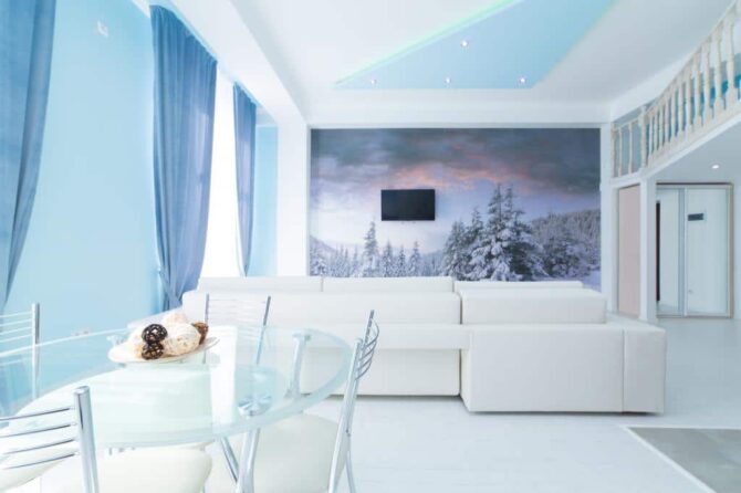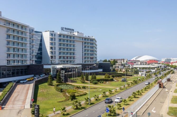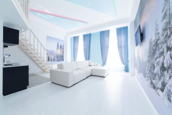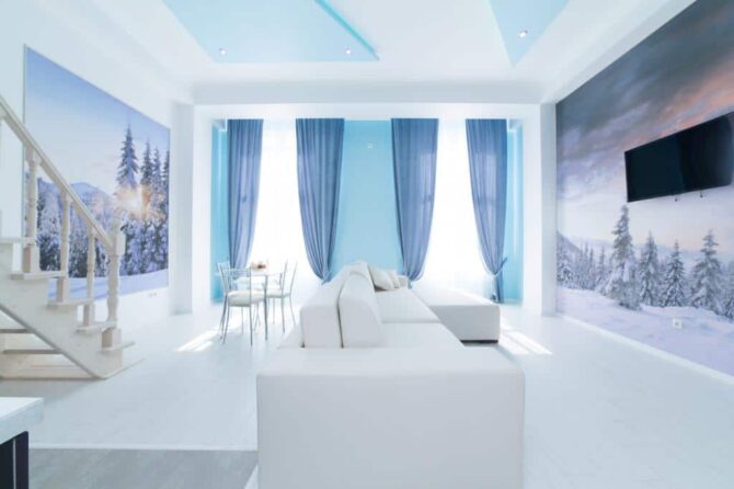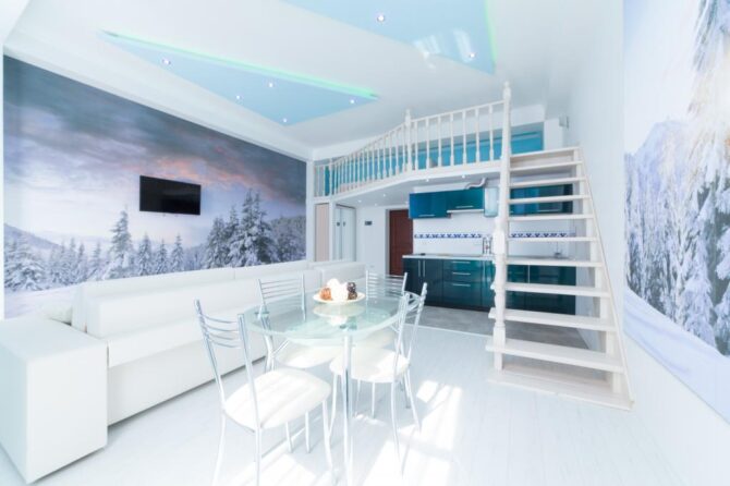 In 3 kilometers from the ice palace “Iceberg” are located apartments “Deluxe Apartment in Art Light City”. They are a stylish apartment with high-quality repairs in the microdistrict of the Olympic Park. The apartments are well equipped. For guests’ convenience, air conditioning, a seating area and a kitchen are included. High-speed Internet access is provided. Guests arriving by car can make use of the parking lot. Within walking distance of several grocery stores, restaurants, bars, cafes. A little further there is an embankment, a Formula 1 track, a tennis academy, the Palace of Alina Kabaeva.