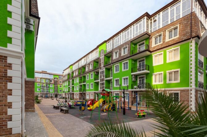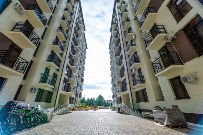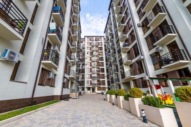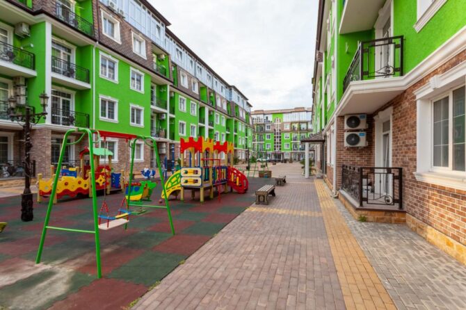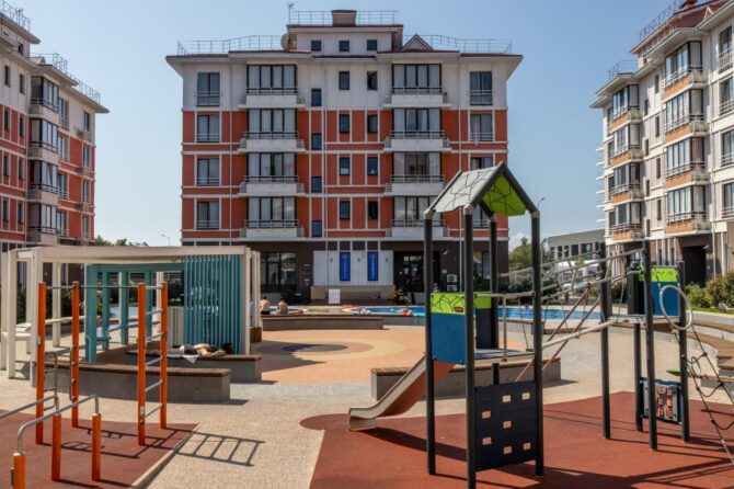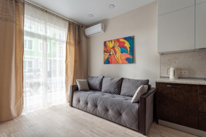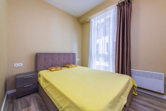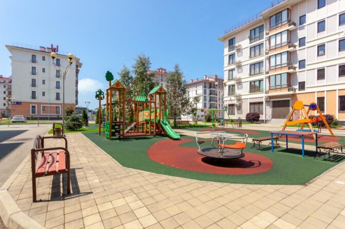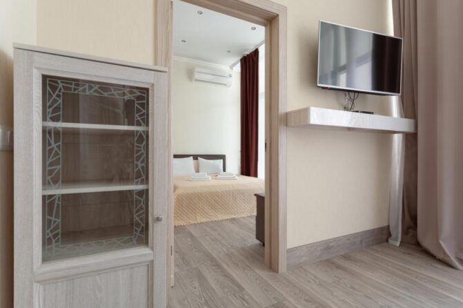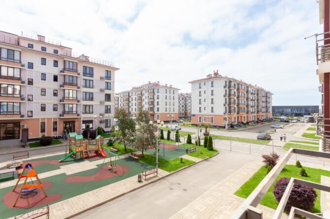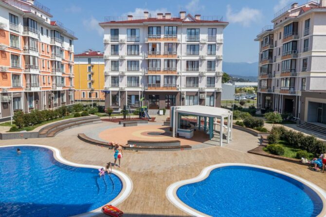 Spacious apartments with a French balcony are a cozy apartment located on the 5th floor of a ten-storey building of the elite residential complex “Sorento Park”. Here, even the most demanding guests will feel a high level of comfort and warmth of home coyness. Literally in 5-7 minutes walk through the park area is the Black Sea coast, which makes this accommodation option just ideal for families with children.