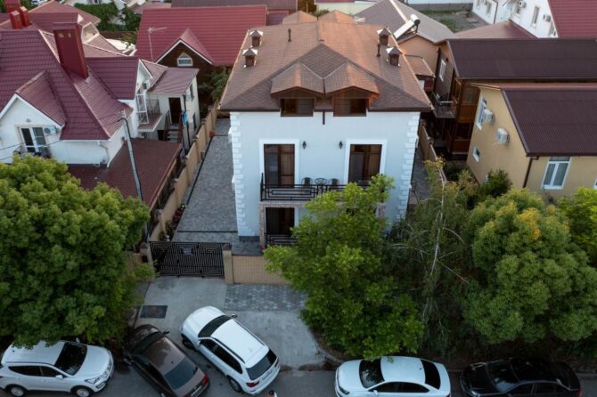 One of the best places to relax in Adler is the “Coffee Style Room”,located 200 meters from the sea on Lenin Street. There is a well-developed infrastructure around. There is a public transport stop, gas stations, canteens, cafes. In a few minutes you can get to the dolphinarium, oceanarium, park areas. The train station is 10 minutes away.