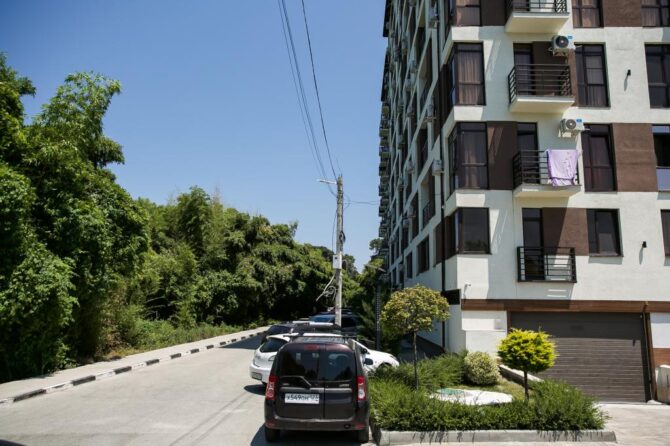 The neighborhood in which the apartments are located has a well-developed infrastructure. Nearby are the Olympic Park, the Ornithological Park, the embankment with singing fountains, the Formula 1 track, the ice palace. The road to the sea takes 5-7 minutes.
