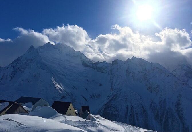 The pearl of the Caucasus, the cradle of Russian mountaineering, the center of extreme sports, the popular ski resort – this is all a tiny village of Dombai in the Karachay-Cherkess Republic. It is murderously beautiful at any time of the year, but especially in winter.