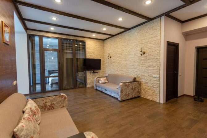 In any case, the apart-idea “Disco” is one of the best offers for tourists in Dombai: a new residential complex with minimal problems with communal services, comfortable plumbing, cool repairs, good bedrooms.