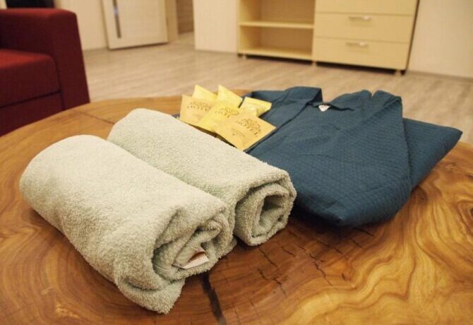 - there are no slippers, bathrobe, bath accessories in the bathroom;