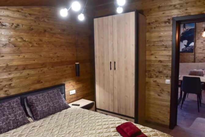 Some of them have undergone a specific refinement: their originally large apartment of 100-120 meters with two or three bedrooms made two apartments for two or four guests (a double bed in the bedroom and a sofa bed in the living room). Living permanently in them will be uncomfortable, but as a temporary refuge for a skier – great, no one will notice anything.