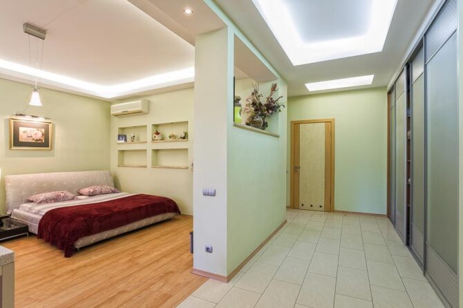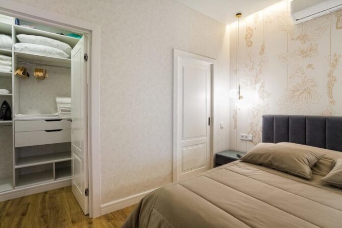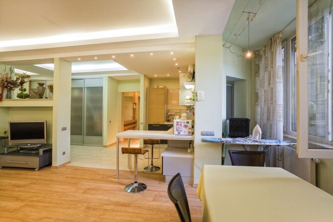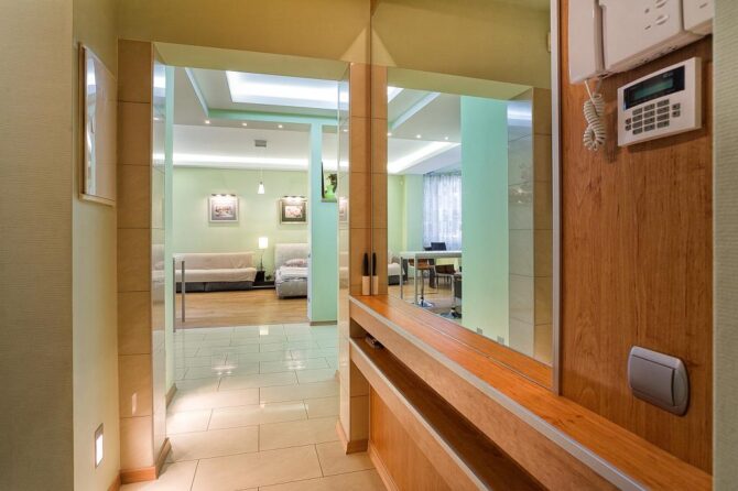 “I want to note the pleasant design of the apartment. All plumbing is of high quality, made taking into account modern trends. In the bedroom, instead of a bulky wardrobe, a dressing room is made. It’s much easier to use and fits more stuff in it. The original layout, the kitchen in the hallway, glass partitions – all this is impressive and leaves a good impression” Elena, Russia