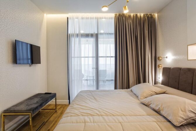 Modern, comfortable and beautiful building of the RC “Lotos” provides guests with picturesque views from the windows to the Seaside Park, the city and the sea. The new promenade with cafés, shops, restaurants and street musicians is a 2-minute walk away. In the 18-storey building opened its own café “Capri” with the best coffee in all of Yalta. In the hall there is an art gallery, and on the floors there are many interesting art objects. One bedroom apartment is located on the 3rd floor. This is a comfortable apartmentdecorated in light brown tones. Comfort is created by a large number of home textiles – pillows-thoughts, blankets, rugs, unobtrusive decor. Smoking is not allowed. Nearby there are relaxation complexes with fitness rooms, saunas and SPA treatments.