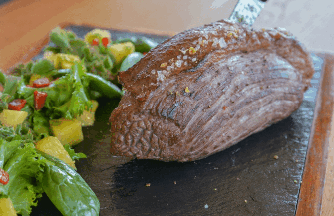 Connoisseurs recommend trying sea fish in the restaurant (depending on the season, it can be ice cream or freshly caught). It is served with grilled vegetables, fried potatoes and wild rice.