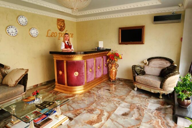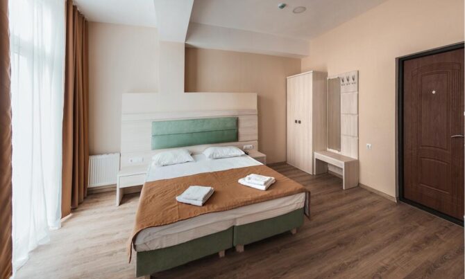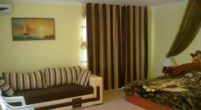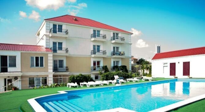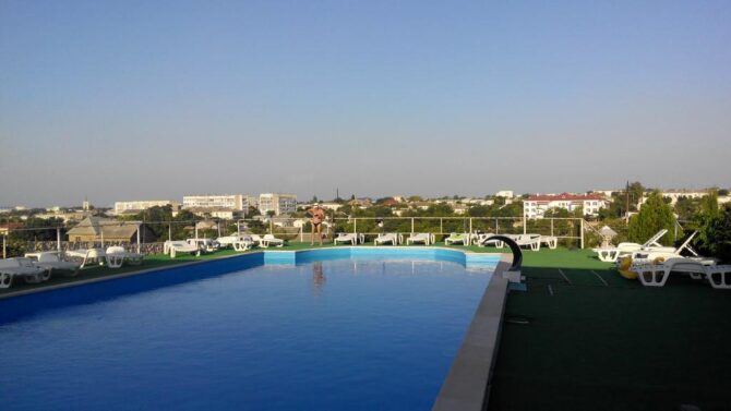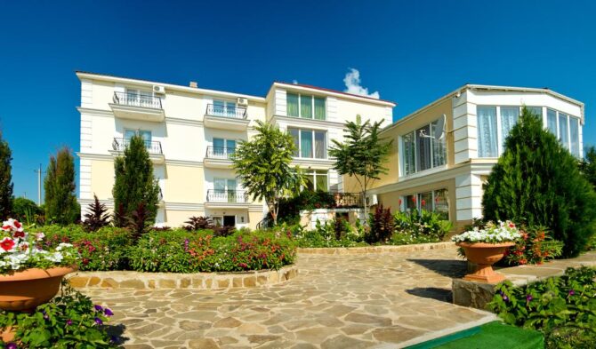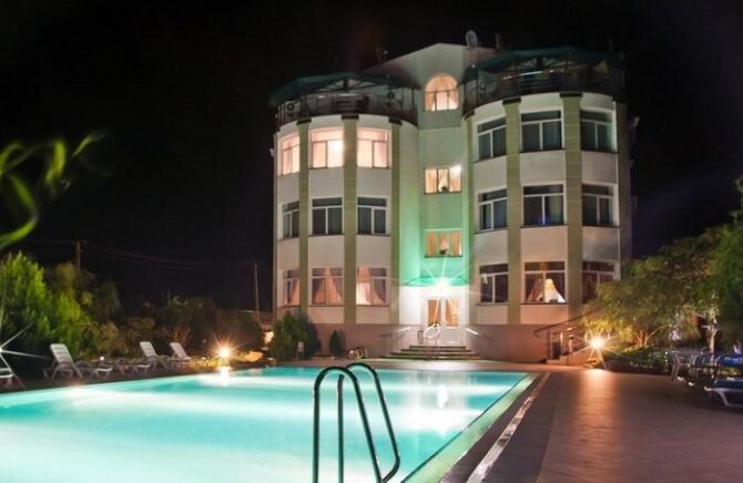 The 4-star hotel is considered one of the most comfortable places to stay in the Black Sea. For families with children, the most optimal will be the booking of a two-level suite. It has enough space for extra beds. The restaurant “LEO PALACE” is responsible for the organization of catering. Upon check-in, several options are offered, up to full board. It features a large outdoor pool. Around it there is a seating area with sun loungers. Russian sauna on firewood will support health, in the karaoke club will give a good mood. Hotels of this level offer excursion services. Their list includes auto tours to the sights of the Crimea, boat trips, underwater diving (diving), hiking.