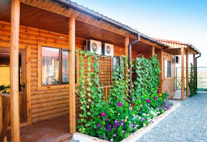 The price includes 3 meals a day, parking, use of children’s and dance areas, barbecue facilities, entertainment and movies. Due to the fact that the decoration in the houses is wooden, the use of electrical appliances is prohibited. Therefore, there is no kettle, no hair dryer, no electric heaters in the rooms. There is no laundry either. Air conditioning is installed.