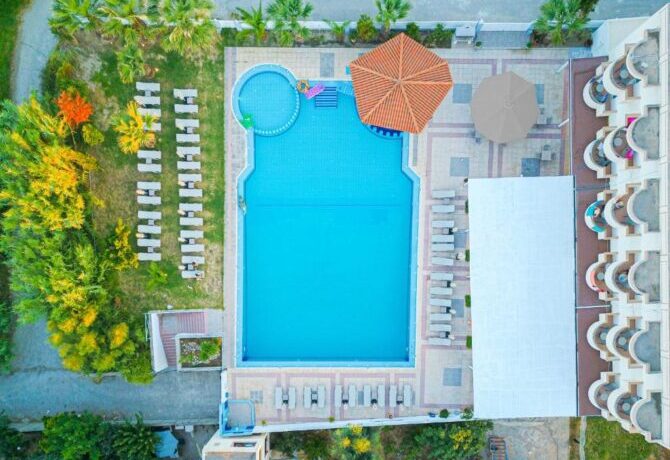 The 4-star hotel offers a holiday free of children’s noise. The complex is located on the first coastline, a few meters from the beach of Agia Marina. This property participates in the Privileged Program, offering guests first-class service and a reasonable ratio of price and quality of accommodation. On the territory there is an outdoor pool, many secluded gazebos, it is possible to order a romantic candlelit dinner. Breakfast is included in the roomrate, lunch and dinner are served a la carte. Guitar acoustic concerts are organized in the evenings.