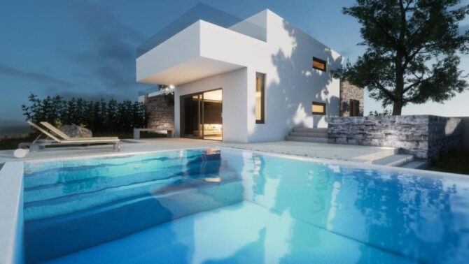 The complex of detached comfortable villas is located on the top of a hill. The houses are fully equipped with the necessary appliances, there is a swimming pool on the street, on the second floor there is a terrace. There are 2 bedrooms, a living room and a kitchen, two bathrooms with a shower. There is a summer dining area outside. The distance from the hotel to the beach of Stalos is 400 m, to Agia Marini – 500 m. The administrator can offer hiking routes. A mini-market is a 3-minute walk away, taverns and cafes are a 5-minute walk away.