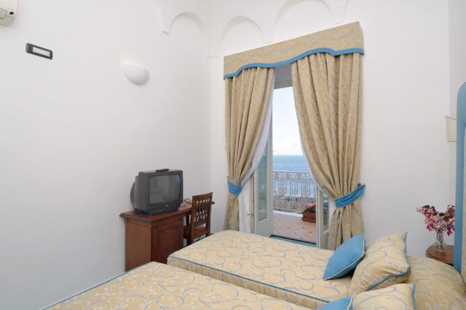 “The hotel is away from the central part of the village – but that’s what we wanted. Walking 15-20 minutes. The beach is private concrete, the entrance from the stairs, the sea is clean! The view from the window, as well as from the terrace of the restaurant – amazing! After breakfast you do not want to leave, it seems that you can sit forever, and look at the shining sea and changing colors! And in the evenings sometimes there are concerts. Against the backdrop of the night seascape, the music of the Amalfi coast is particularly impressive!”