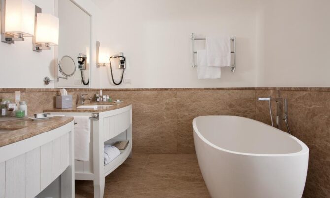 The hotel in Amalfi Hotel Santa Caterina is in great demand – it is located in a villa that is built right on the rock. The hotel’s terraces and rooms offer sea views. For relaxation on the territory of the hotel there are several terraces and a beautiful infinity pool. The area near the pool is fully equipped, and you can go down to the private beach on special lifts.