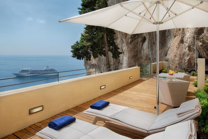 Another worthy grand hotel in Amalfi is the NH Collection Grand Hotel Convento di Amalfi. The hotel is located in an old monastery built in the XIII century, right on top of the cliff. The sea and private beach can be reached in just 7 minutes.