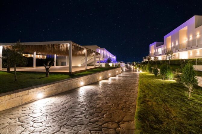 A transfer can be booked from the airport upon arrival, and the hotel driver will take you here in 15-20 minutes. The resort is located on the first coastline of the Aegean Sea, and the beach is closed and guarded.
