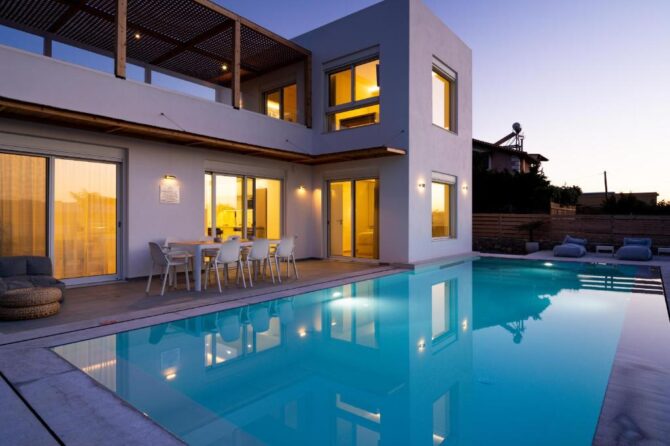 Villas with private pool – an ideal holiday destination for families with children are located in Analipsi, the nearest town of Agios – Nikolaos less than an hour away.