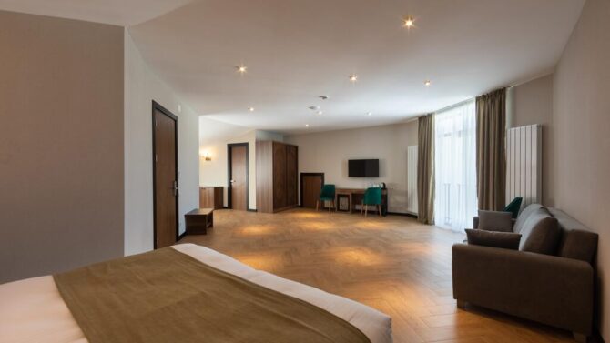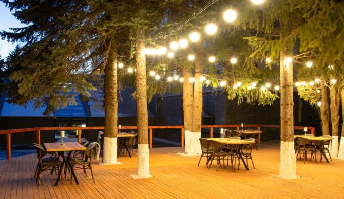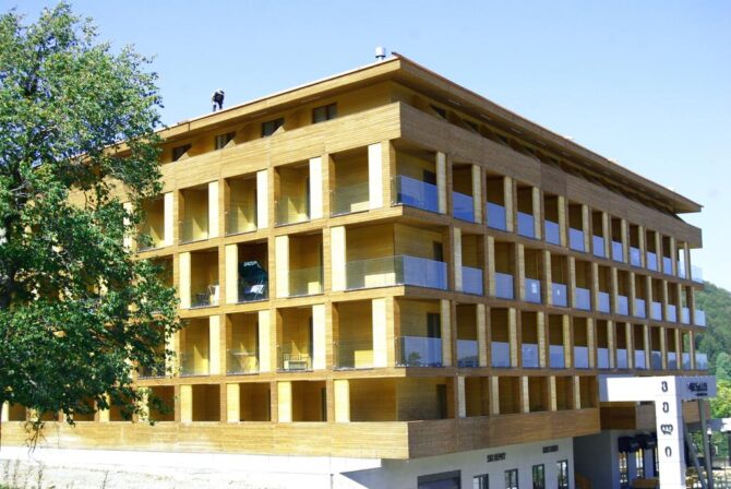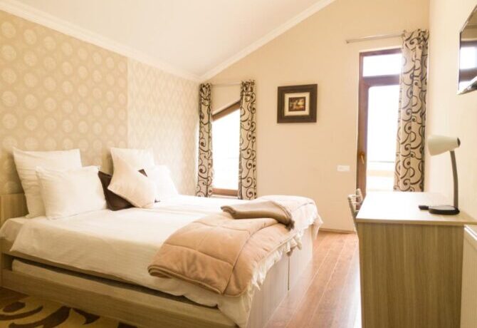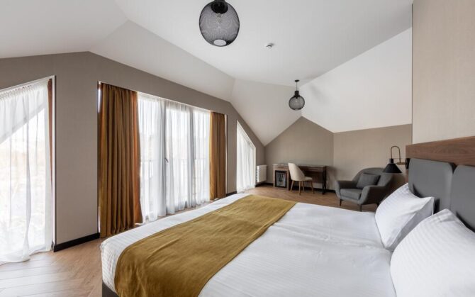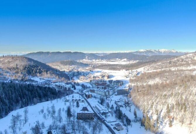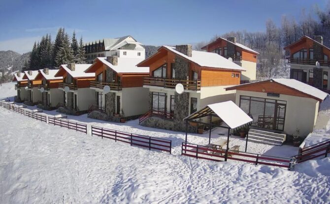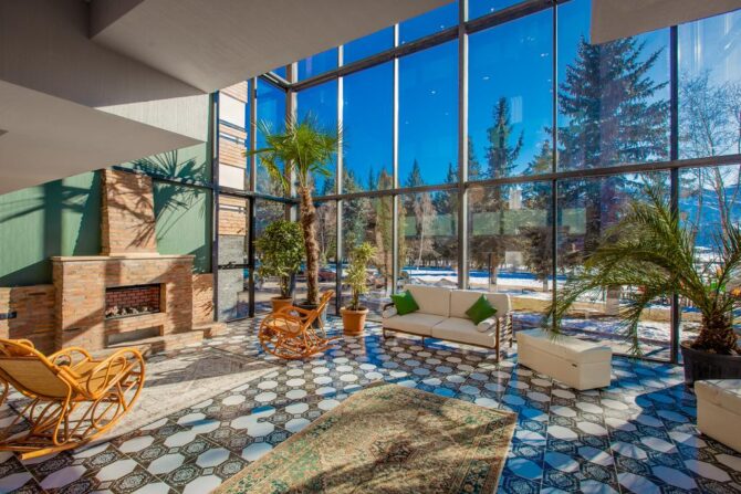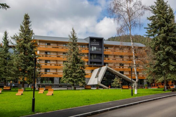 One of the best hotel complexes,marked with 5 stars of comfort, is located in the natural area of the village of Bakuriani. In the 5-storey buildings, standard, superior, family rooms and apartments are prepared for the meeting of guests. There are suites. Breakfast is served in the morning and the restaurant serves guests throughout the day. It offers a bar, fitness center, swimming pool, common seating area. children’s playroom. Guests can relax in the hotel’s spa and wellness centre.